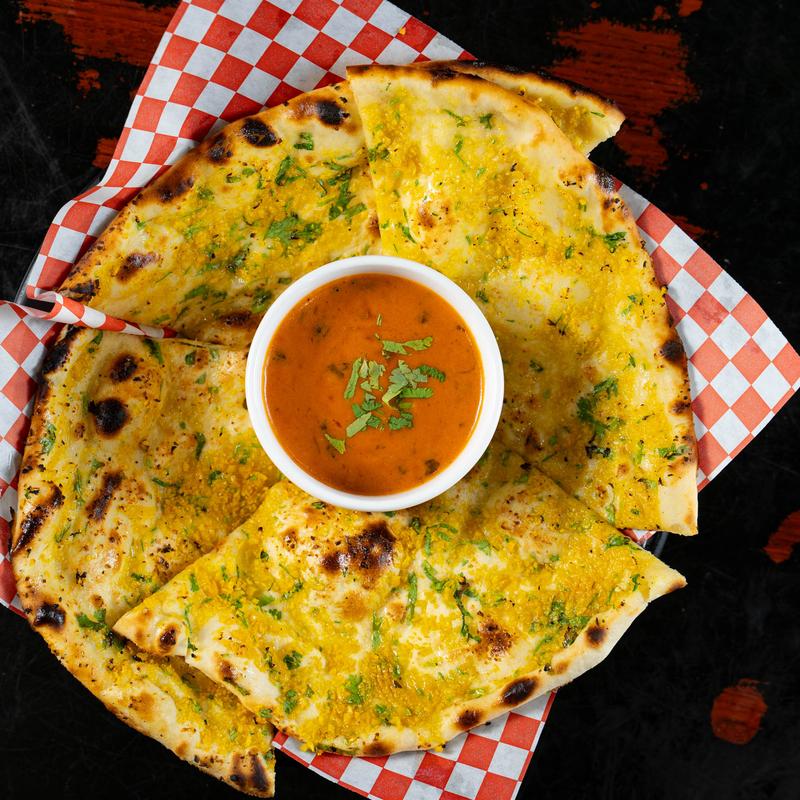 Soft tandoor-baked naan filled with melted cheese, finished with butter and fresh herbs.
