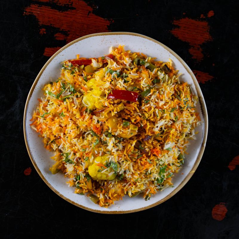 Aromatic basmati rice layered with vegetables, spices and crispy onion.